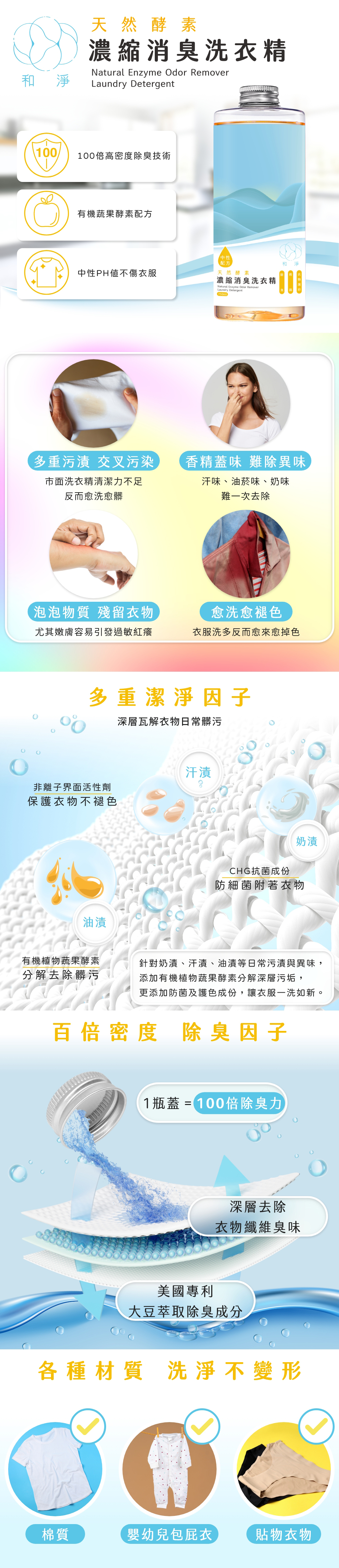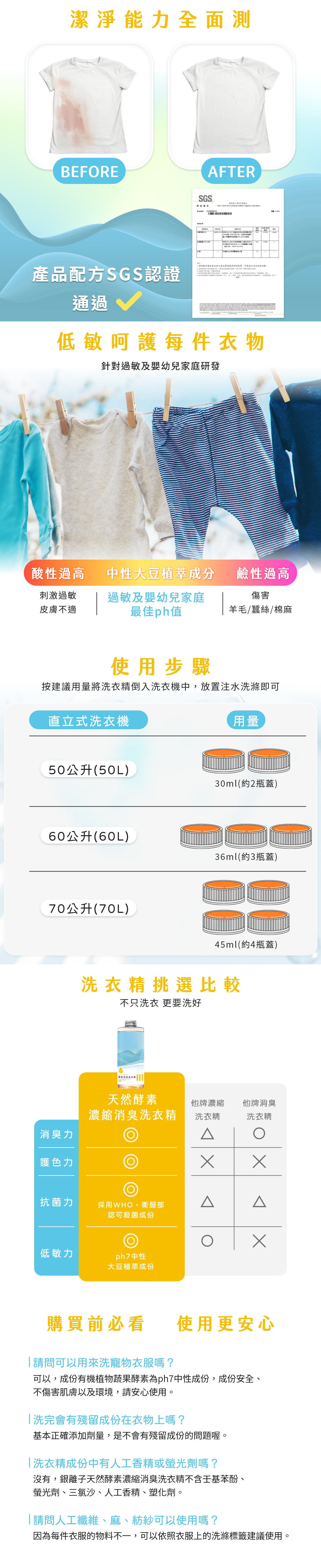 💧天然酵素配方:採用有機蔬果酵素,深層分解污漬。